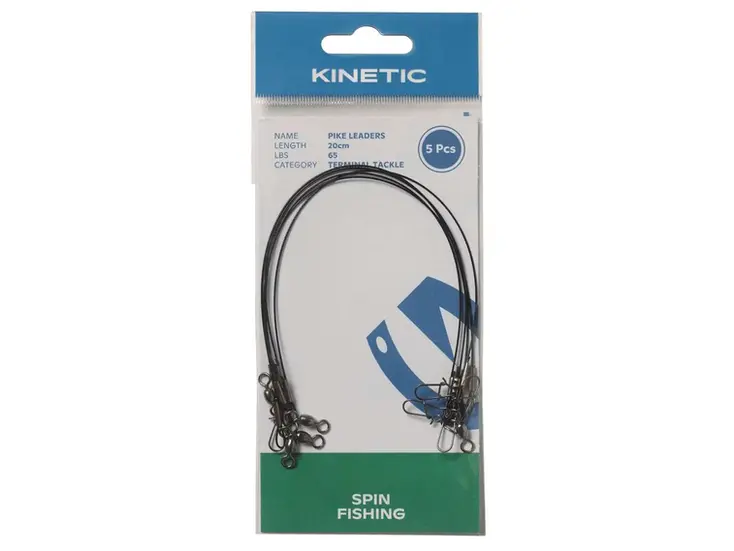 Klassikaline traatjuht, mida kalurid üle maailma on pikka aega usaldanud. Iga kineetiline haugijuht on maksimaalse tugevuse saavutamiseks käsitsi painutatud – võite olla kindel, et see peab vastu kõigele, mida hambulised elukad välja söödavad. Ühes otsas kraanapöördega ja teises otsas kahekordse lukuga ei mõjuta see landi liikumist ega tasakaalu. * Tugev kaetud roostevabast terasest traat * Kraanapöördega ja kahekordse lukuga